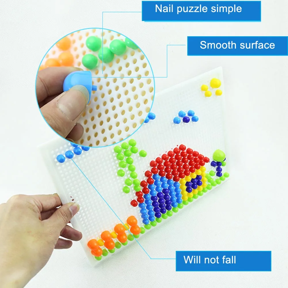 Premium Mosaic Pegboard Kids Educational Toy 296pcs Mushroom Nails Jigsaw Puzzles Learning Toys VJ-Drop